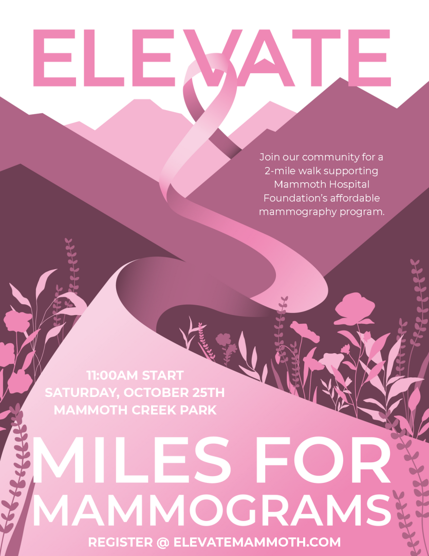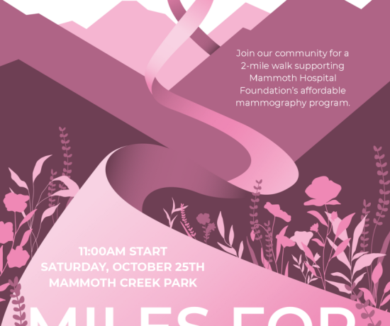 Join family, friends, neighbors, and care teams for a 2-mile community walk that raises awareness and removes cost barriers to lifesaving screening. Whether you’re walking for yourself, in honor of someone you love, or simply to support local care, your registration directly fuels affordable mammograms for our community. Every step supports Mammoth Hospital Foundation’s affordable mammography program.