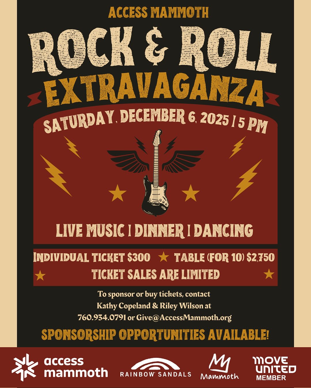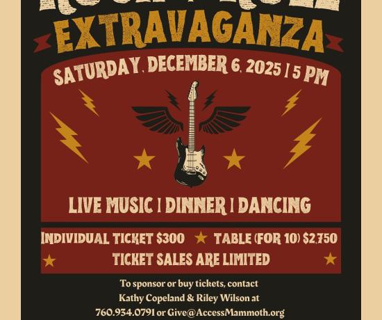 Rock and roll fans, it’s time to get ready for the best night of the year! Join Access Mammoth (formerly Disabled Sports Eastern Sierra) for a night of epic rock and roll at the Rock & Roll Extravaganza on Saturday, December 6th.