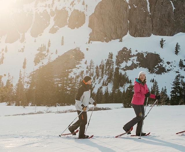 Kick and Glide In the Beautiful Lakes Basin Cross Country! Escape to the serene tree-lined trails of Mammoth's scenic Lakes Basin for an unforgettable winter experience. Nineteen plus miles of freshly groomed skating, classic and snowshoe trails await cross-country skiers and snowshoers of all abilities. In the tranquility of the backcountry, only the sound of winter birds and your own locomotion fills your ears as the bustle of town dissolves. Experience the Sierra in a way few others do: come play in the woods.